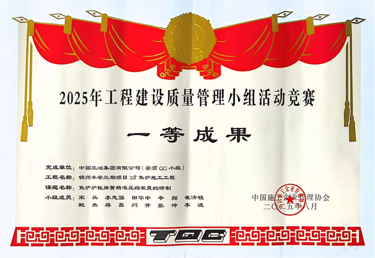 與往年相比,中國三冶今年獲獎數(shù)據(jù)實(shí)現(xiàn)多項(xiàng)突破:一等獎數(shù)量同比增長33.33%,二等獎增長50%,創(chuàng)新型成果更是翻倍至4項(xiàng),增幅達(dá)100%。其中,工業(yè)工程公司"焦?fàn)t爐柱彈簧精準(zhǔn)壓縮裝置的研制"成果,不僅以遼寧省綜合評分第一名的成績斬獲"最佳發(fā)布獎",更通過將彈簧壓縮精度控制在"±1mm"的嚴(yán)苛標(biāo)準(zhǔn)內(nèi),為同業(yè)同類工程提供了可復(fù)制的精準(zhǔn)質(zhì)量管控方案。這正是中國三冶質(zhì)量管理從"解決問題"向"創(chuàng)造標(biāo)準(zhǔn)"轉(zhuǎn)型升級的生動體現(xiàn)。